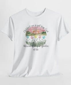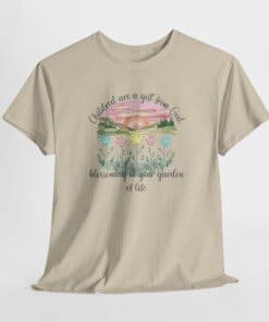 Children Are a Gift from God Christian T-Shirt. This sweet Christian kids t-shirt has a watercolor sunrise and colorful handprints like flowers. The words “Children are a gift from God blossoming in your garden of life” make it perfect for families and parents. Wear this faith based family shirt to show how much you love your children and celebrate God’s gift to parents every day. A wonderful Bible verse t-shirt for kids and parents!