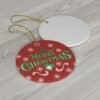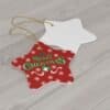 This ornament is crafted from 0.125″ (3mm) thick, high-quality ceramic, ensuring durability and a polished appearance. It is available in four shapes: Star, Heart, and Circle, each featuring a glossy finish that enhances the vibrant design. The print is applied to one side, with a hole and a gold-toned hanging string included for easy display. Please note that the height of the hole may slightly vary.
