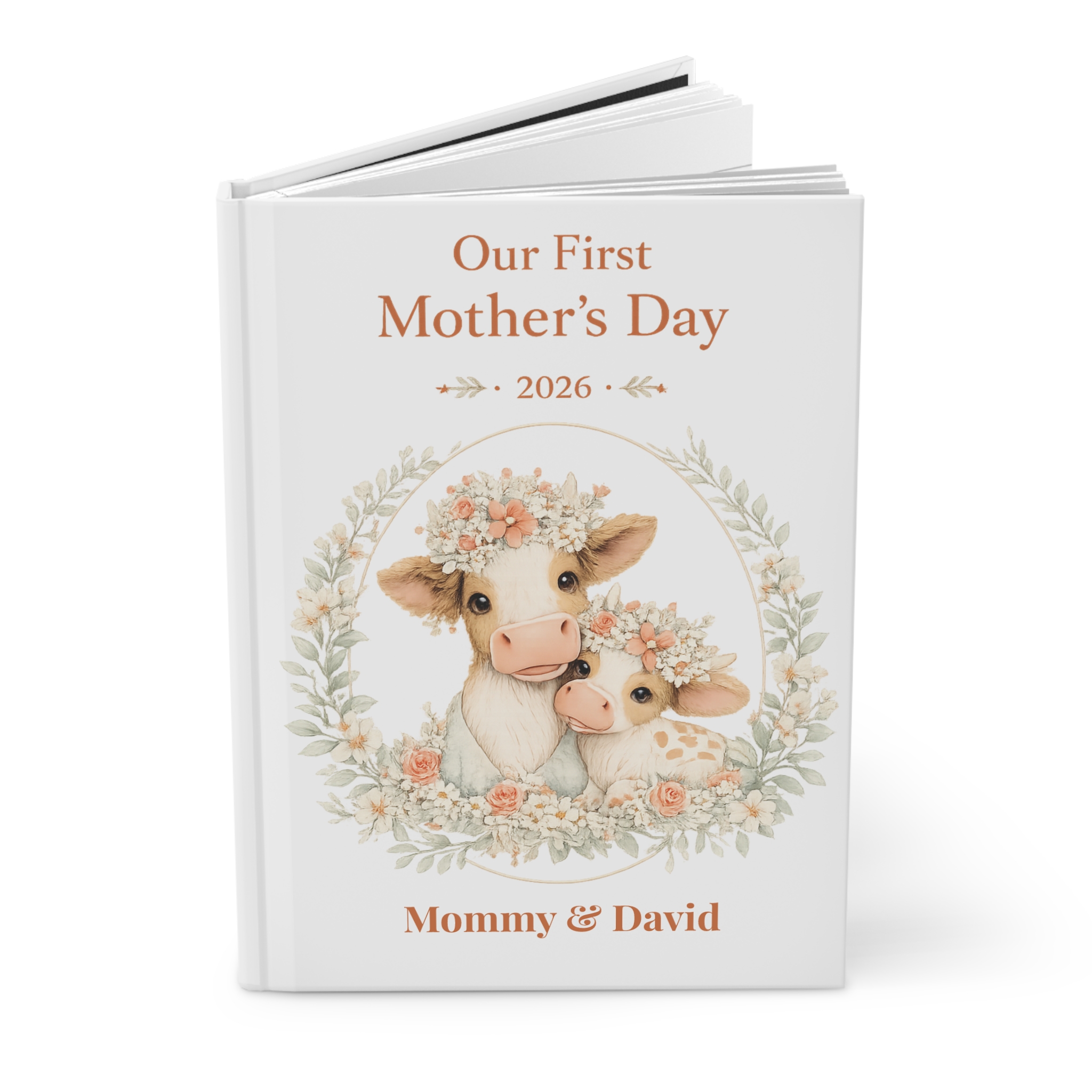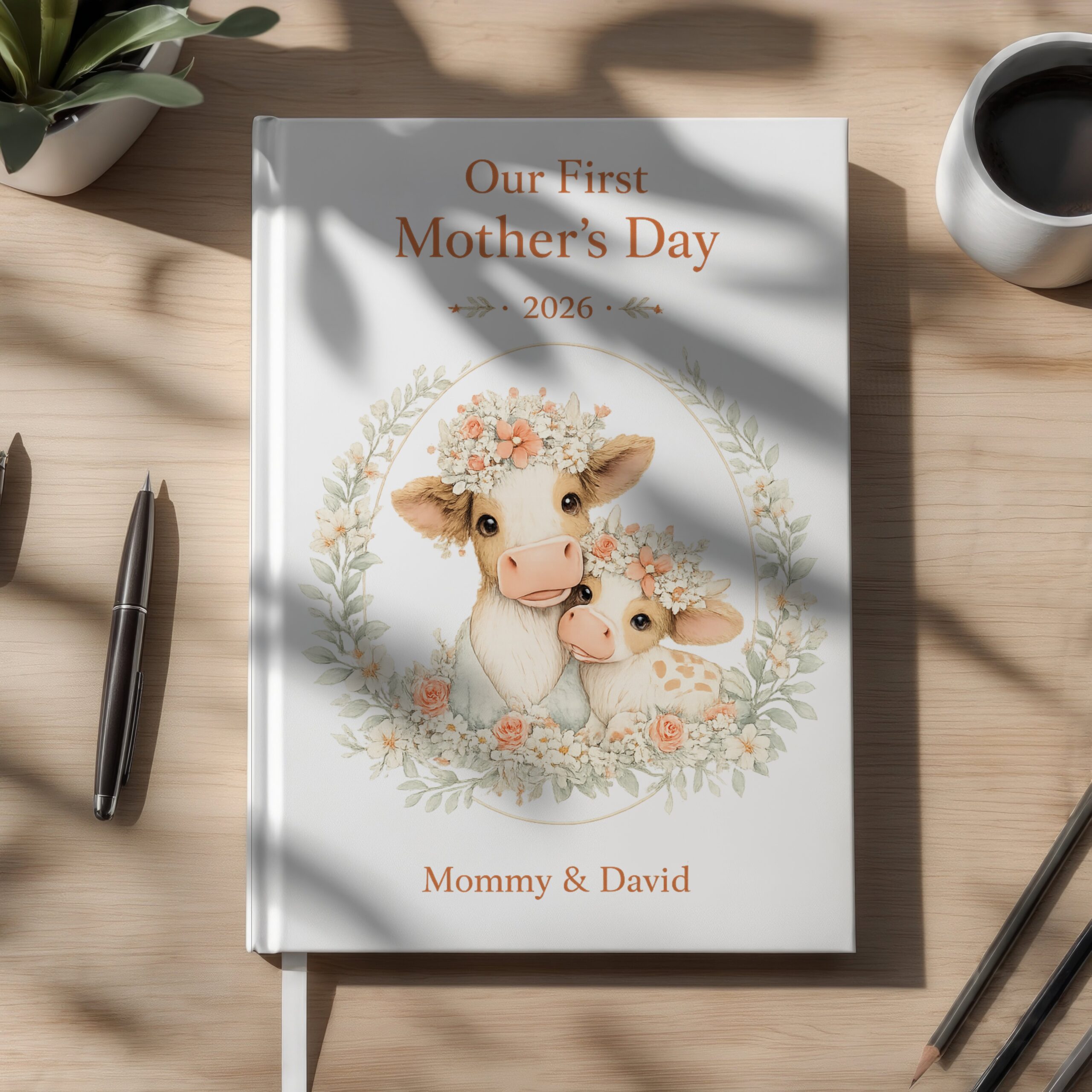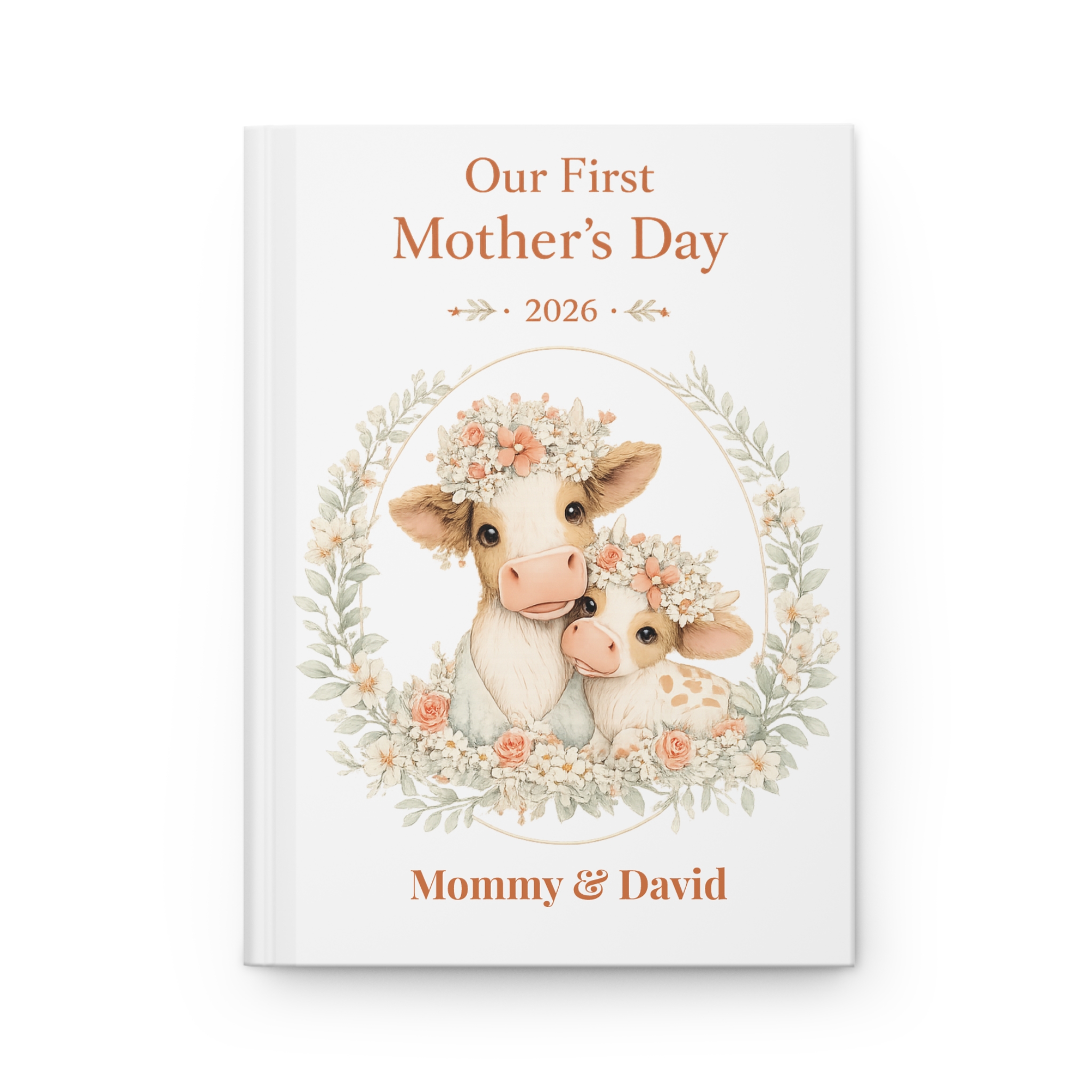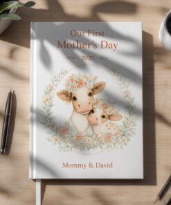 This elegant keepsake journal is the perfect way to capture memories, thoughts, and milestones from a mother’s very first Mother’s Day. Featuring a soft, premium botanical design with an adorable cow and calf illustration, this journal makes a meaningful and lasting gift.