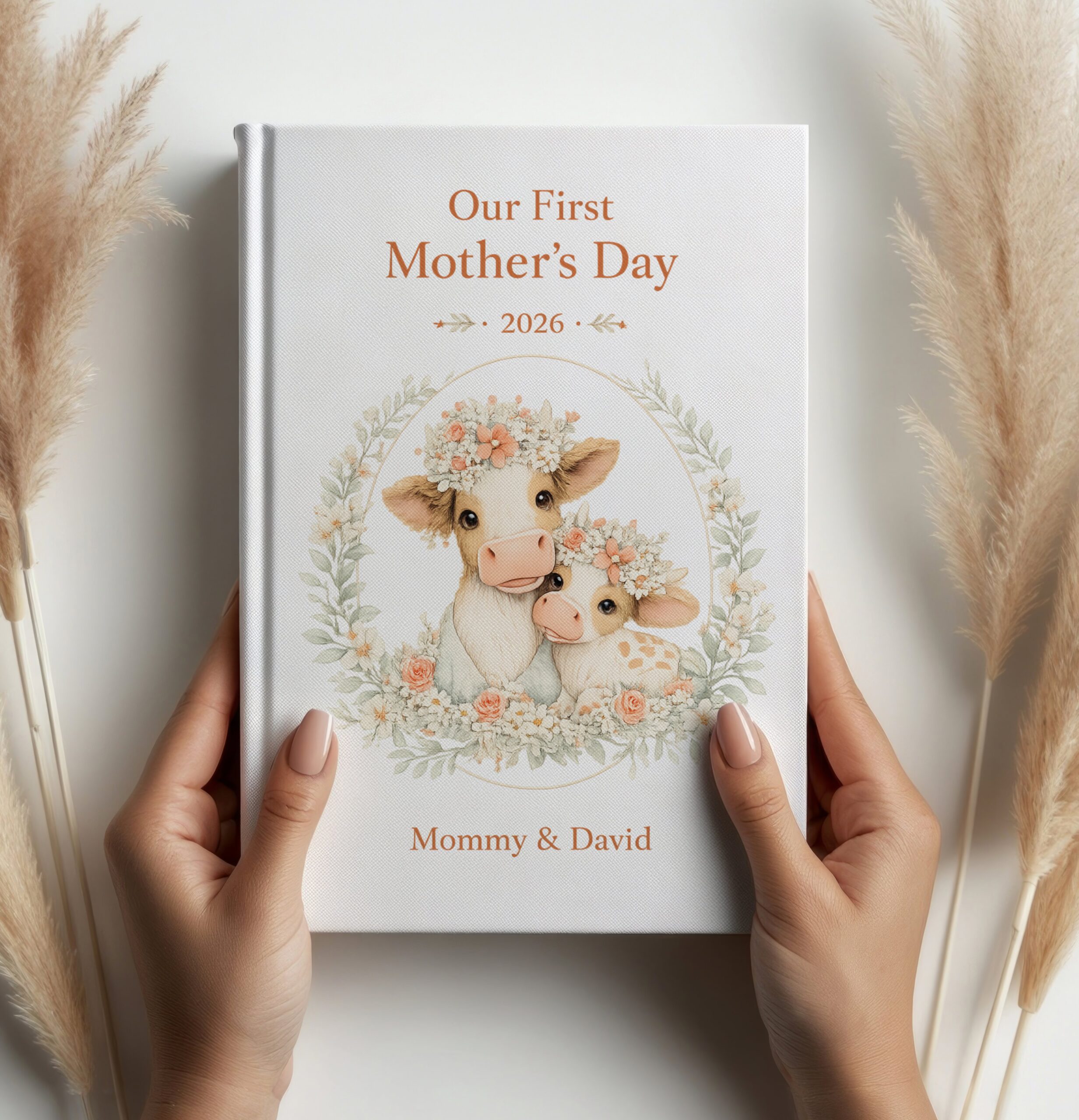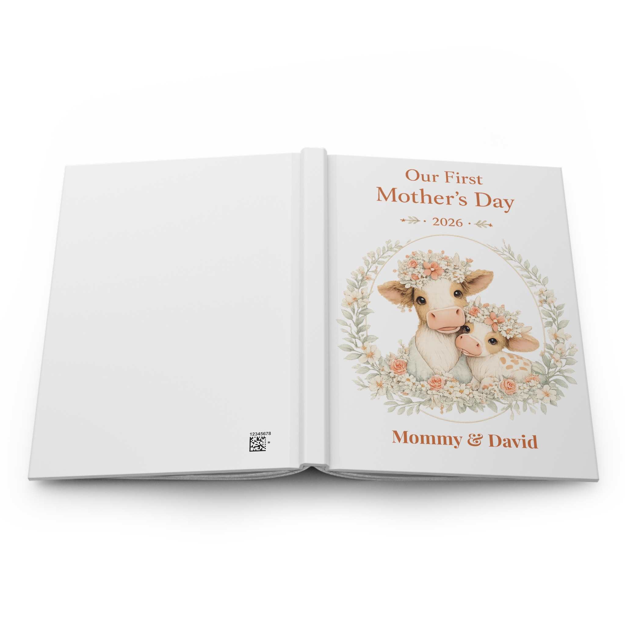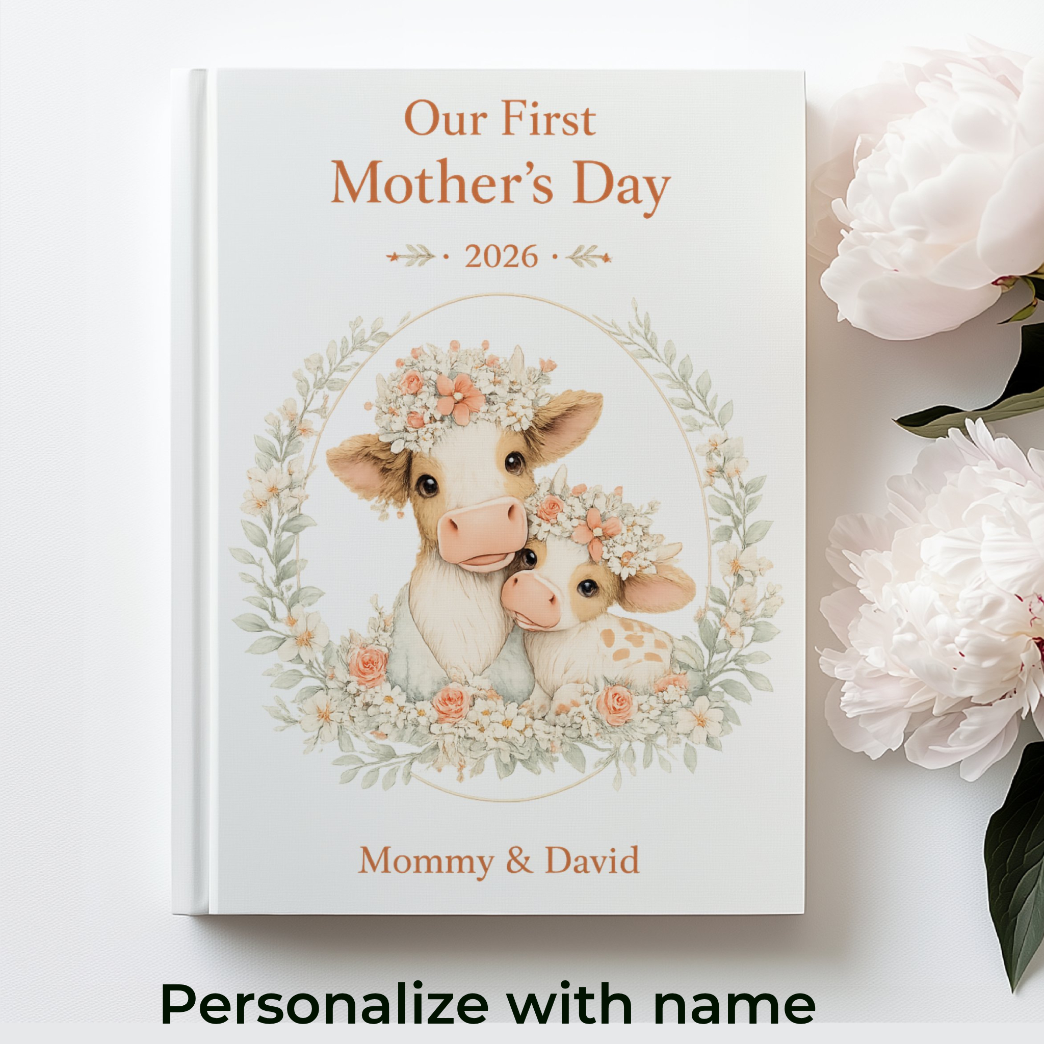 This elegant keepsake journal is the perfect way to capture memories, thoughts, and milestones from a mother’s very first Mother’s Day. Featuring a soft, premium botanical design with an adorable cow and calf illustration, this journal makes a meaningful and lasting gift.