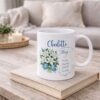 Make a May birthday extra special with a personalized May Birth Flower Mug designed to be elegant, meaningful gift. This custom 11 oz coffee cup features a beautiful bouquet of white lilies, soft blue accents, and your chosen name in a graceful script for a keepsake that feels personal from the very first glance.