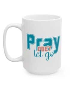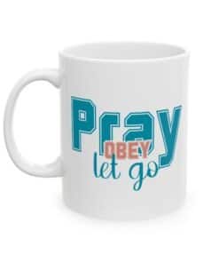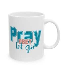 This Pray and let go mug serves as a reminder of three important values in our relationship with God: ‘Pray, Obey, Let Go.’ It provides encouragement to pray, obey, and let go of worries by placing your trust in God. Perfect for those seeking spiritual inspiration and daily reminders of faith. Ideal for religious holidays and special occasions.